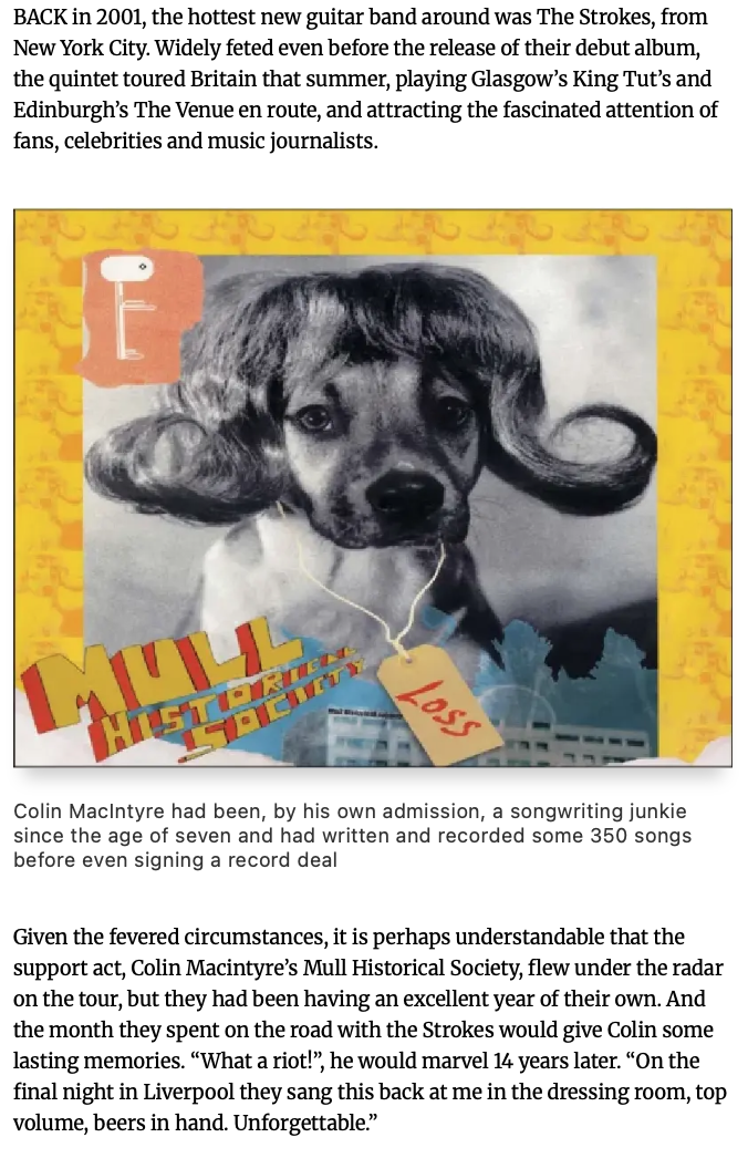 On the eve of the new (10th) MHS album and UK Tour, The Herald have been celebrating ‘Loss’, Colin’s “beacon of originality”, album-of-the-year-topping and Gold-selling debut. Also featured is THAT The Strokes & MHS tour! More anniversary celebrations tba this year and MHS are back at King Tuts June 10th almost 25 years to the day!